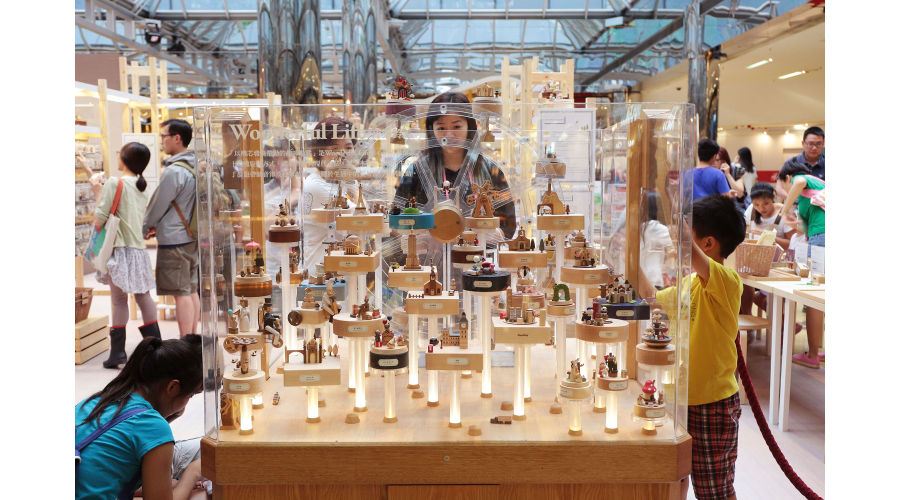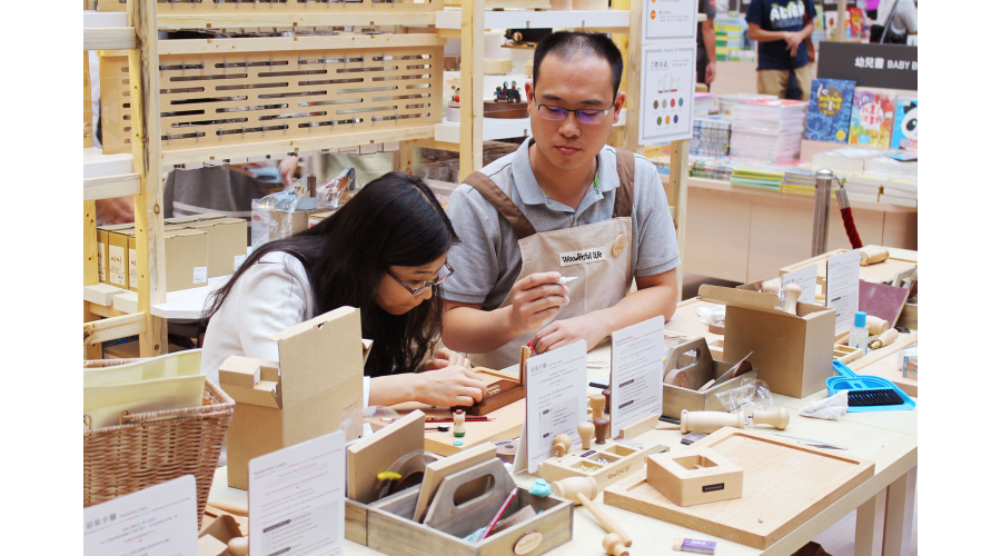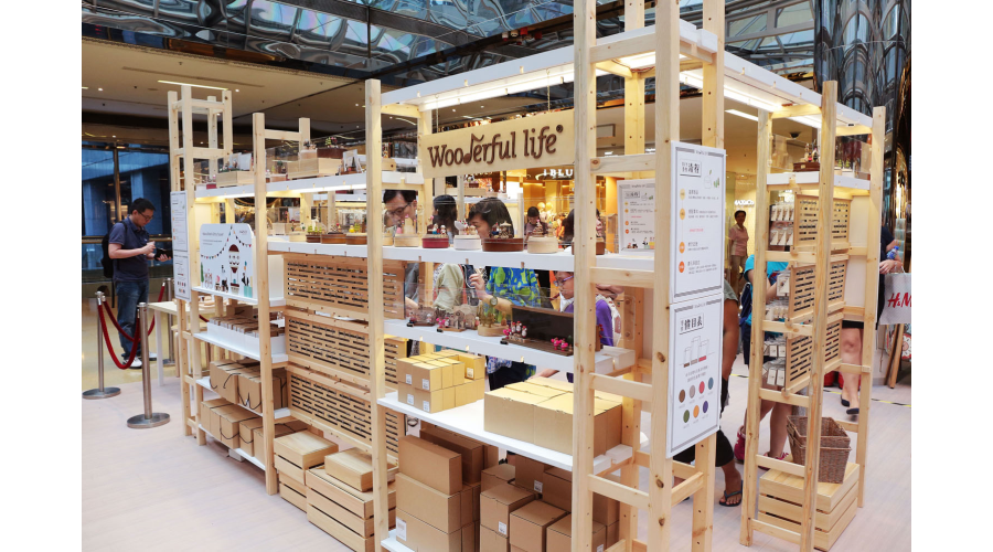 香港太古城中心誠品Pop-up Store 限定店已經熱鬧展開,DIY音樂鈴區吸引眾多人潮現場有多位工作人員,協助大家組裝自己獨一無二的音樂鈴以及相框和手機座等木器生活用品。